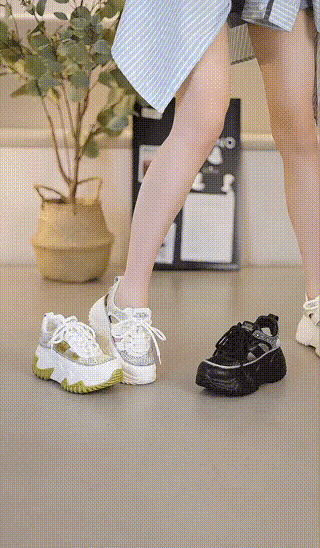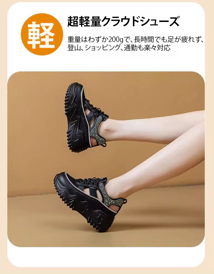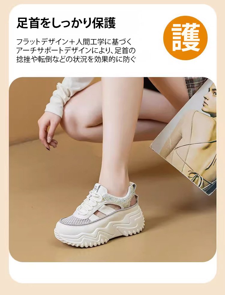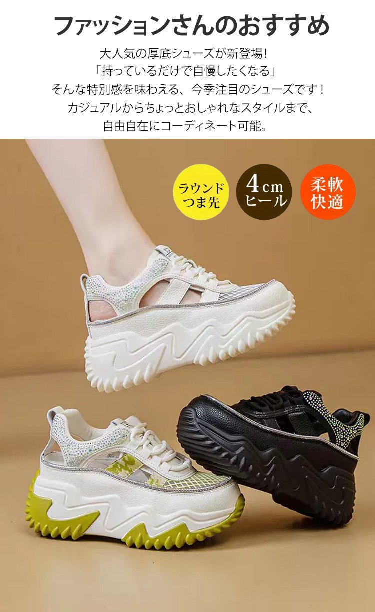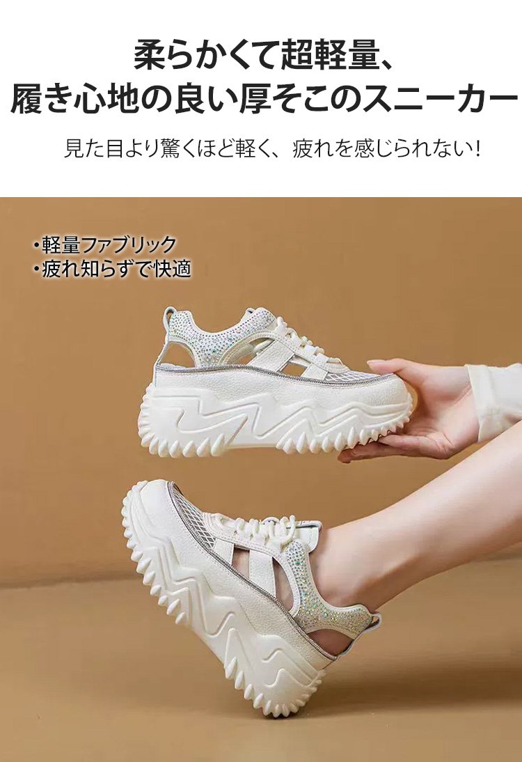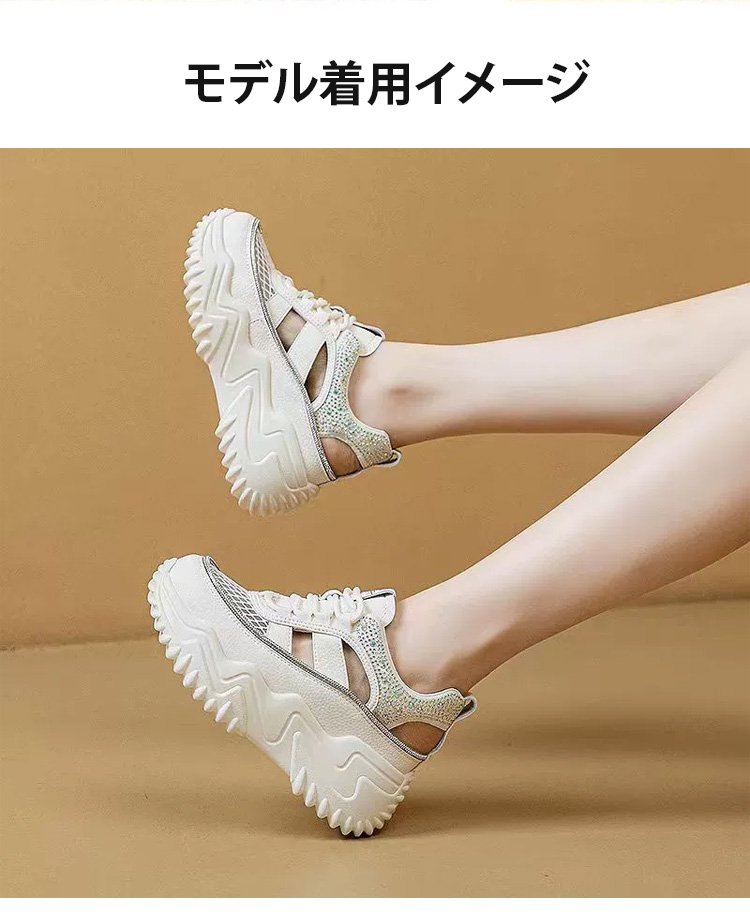 ラインストーン飾りの厚底透かしスニーカー
