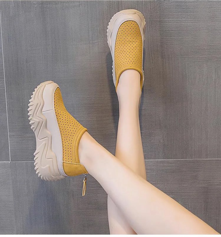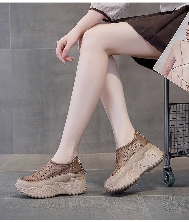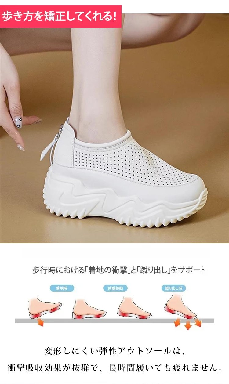 透かし彫りの厚底スリッポンレディース