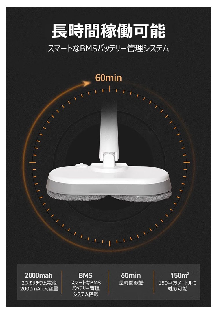水噴射機能付きの【 電動モップ 】神‼️100平方メートルの家の掃除にはたった3分しかかかりません!