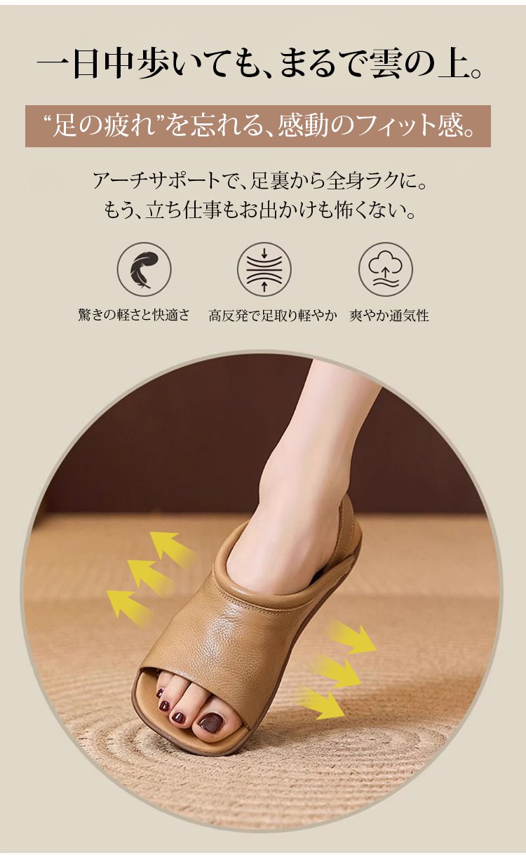 外反母趾·かかとの痛み·足裏の疲れ--その悩み、オ-プントウサンダルで一気に解決!