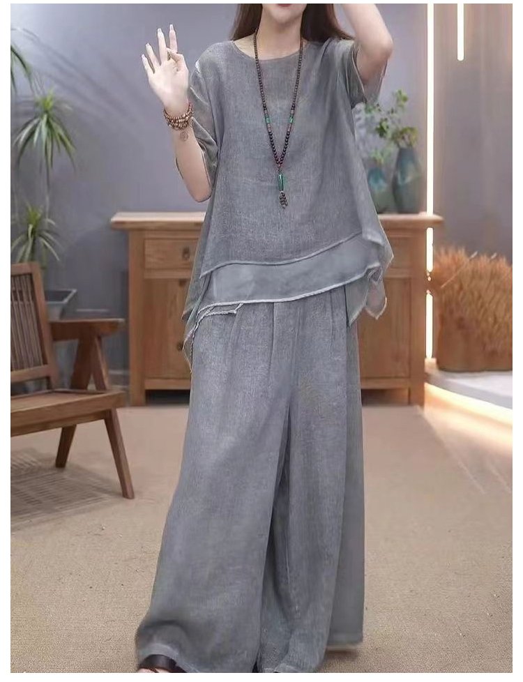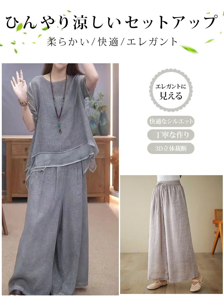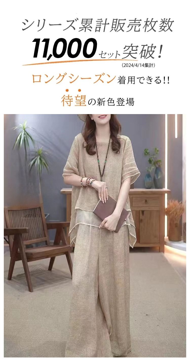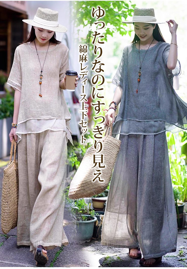 不規則綿麻上下セット